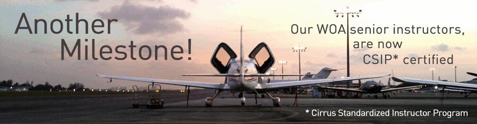 Apr 2013 - WOA management pilots receives Cirrus factory CSIP certification & subsequently Cirrus Aircraft Sales Representative.