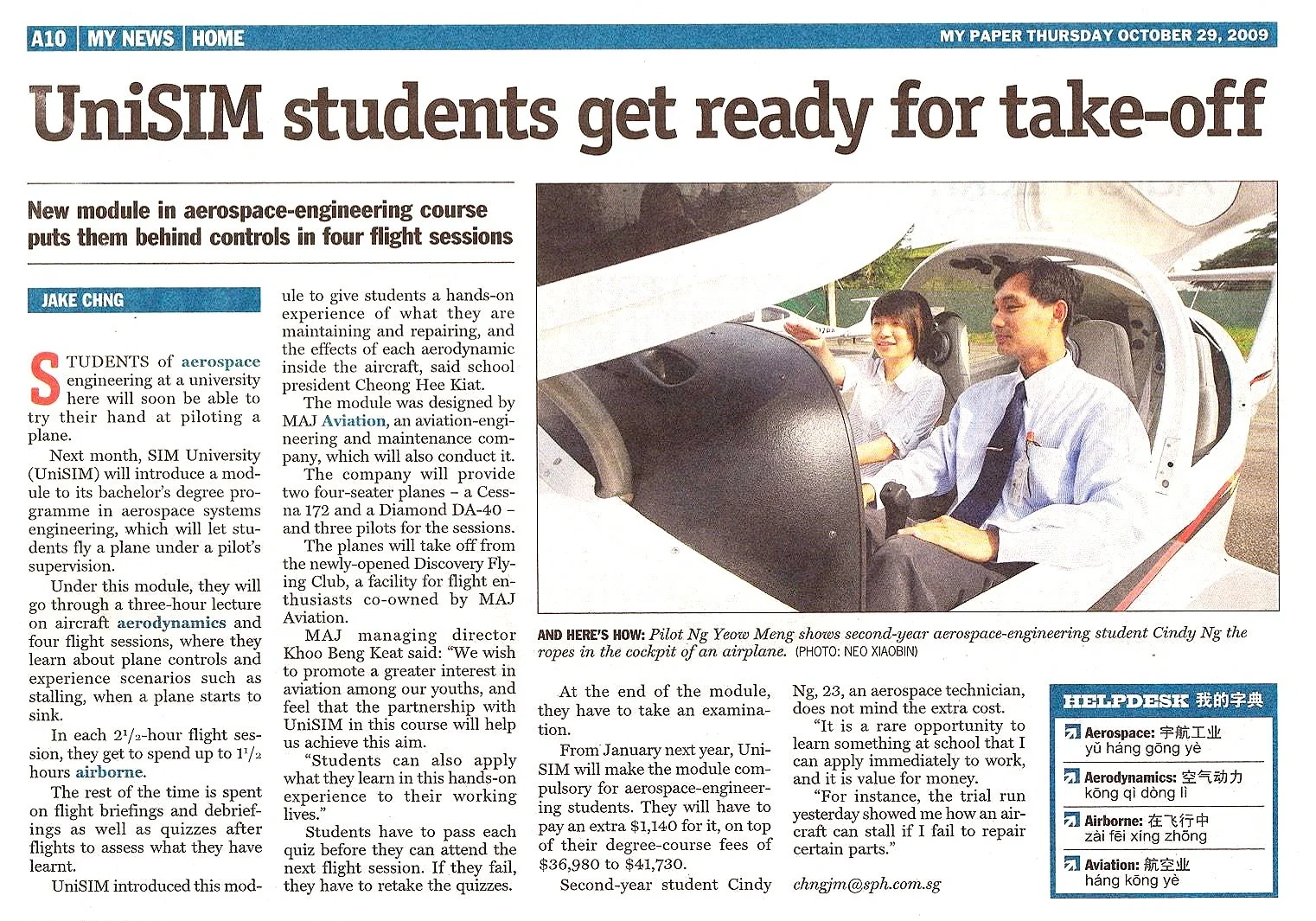 Nov 2009 - WOA contracted as consultant and service support for MAJ and UniSIM/STEE Flight Experience Projects